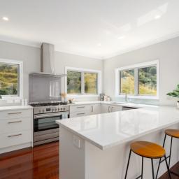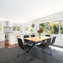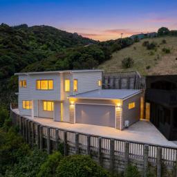 Upstairs is the huge open plan living space, modern kitchen, as well as an adjoining formal living that could even be a fourth bedroom if someone wished. You have good sun and heat pump to keep things warm in winter and cool in summer plus a separate WC. This floor also enjoys great indoor/outdoor flow to the truly spacious deck enjoying sun, easy maintenance, and the most relaxing outlook over farmland and native bush. The wildlife really pops out to say hello here and you feel a real sense of seclusion while only being a 3-minute drive to the Churton Park Shopping Centre.