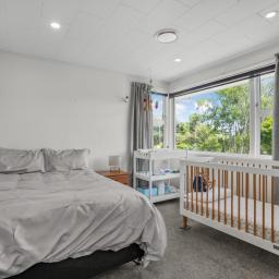 The upper level is dedicated to family living, featuring four well sized bedrooms, each with its own wardrobe. The master suite serves as a true retreat, complete with a walk-in wardrobe and ensuite. A spacious family bathroom with both bath and shower, a separate toilet and a generous storage cupboard complete this floor. With double glazing upstairs and four heat pumps throughout the home, year round comfort is assured.