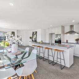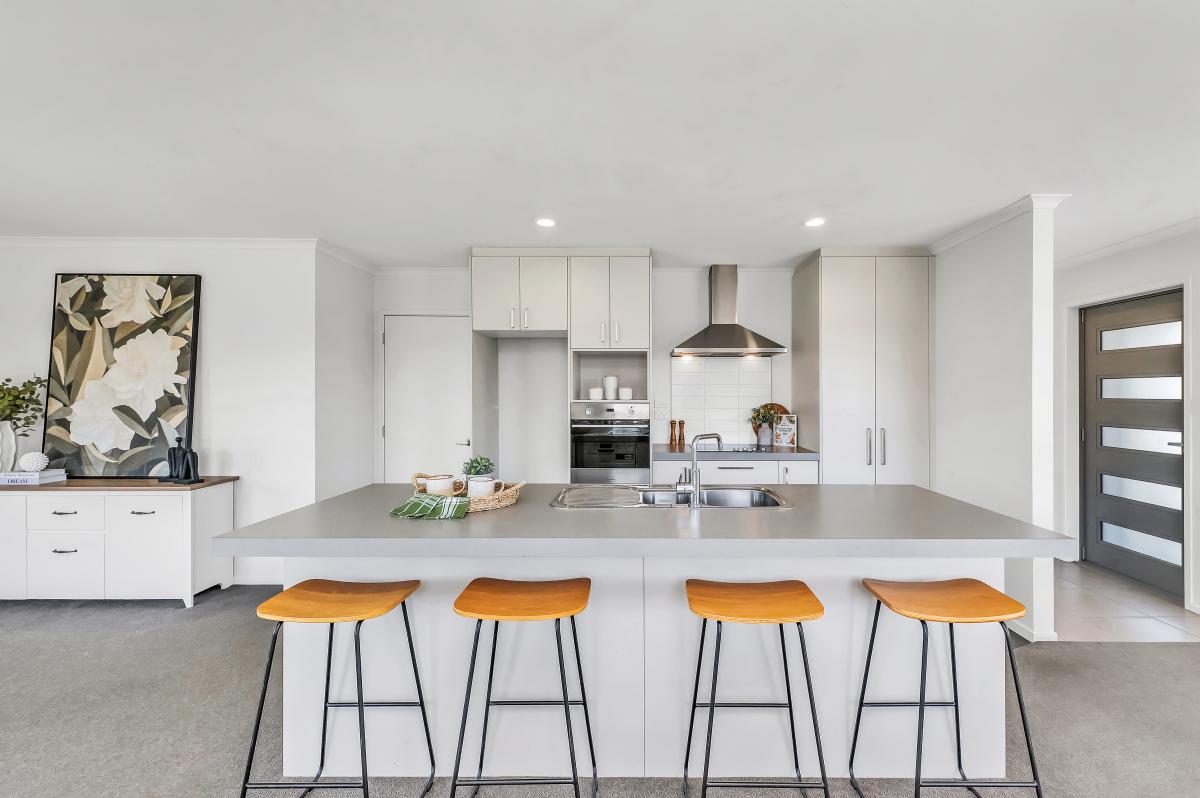 Central to everyday living is the modern kitchen which integrates seamlessly with the living and dining space, while outside, the 515sqm section has been designed with minimum upkeep in mind to ensure you’ll be able to put your feet up over the weekends.