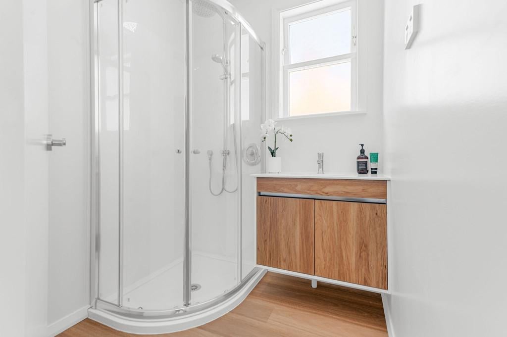 The interiors are light, fresh, and cohesive. The lounge is well proportioned and comfortable, complete with two heat pumps for year-round climate control, and opens and steps down to an outdoor deck that extends the living space - ideal for entertaining or relaxed evenings. Every finish has been thoughtfully selected, creating a refined, move-in-ready home.