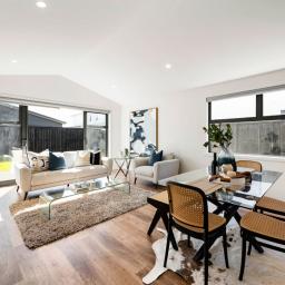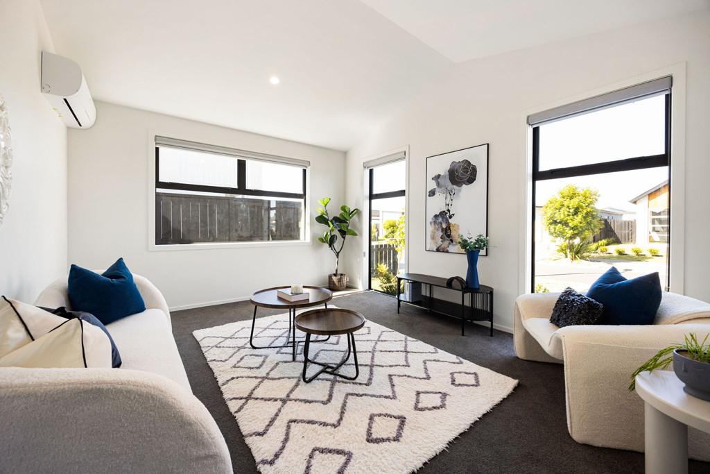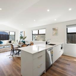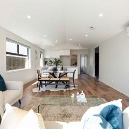 Step inside to a light-filled open-plan hub that brings together the kitchen, dining, and living areas. The sleek modern kitchen features quality appliances, ample bench space, and a well-appointed scullery, perfect for keeping the mess out of sight while you cook and host with ease. Sliding doors connect the main living area to the outdoors, creating a seamless flow for year-round enjoyment.