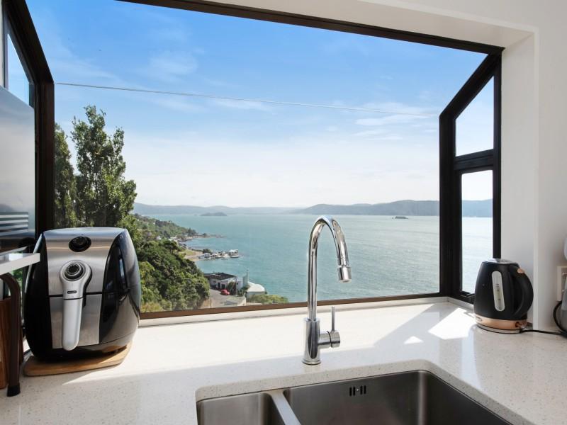 - Modernised, light-filled living/dining and kitchen with wraparound vistas that sweep from Pencarrow Lighthouse across Seatoun's iconic bays and landmarks to beyond the harbour and Mount Victoria