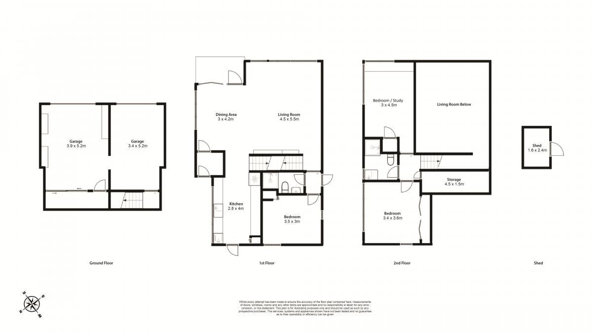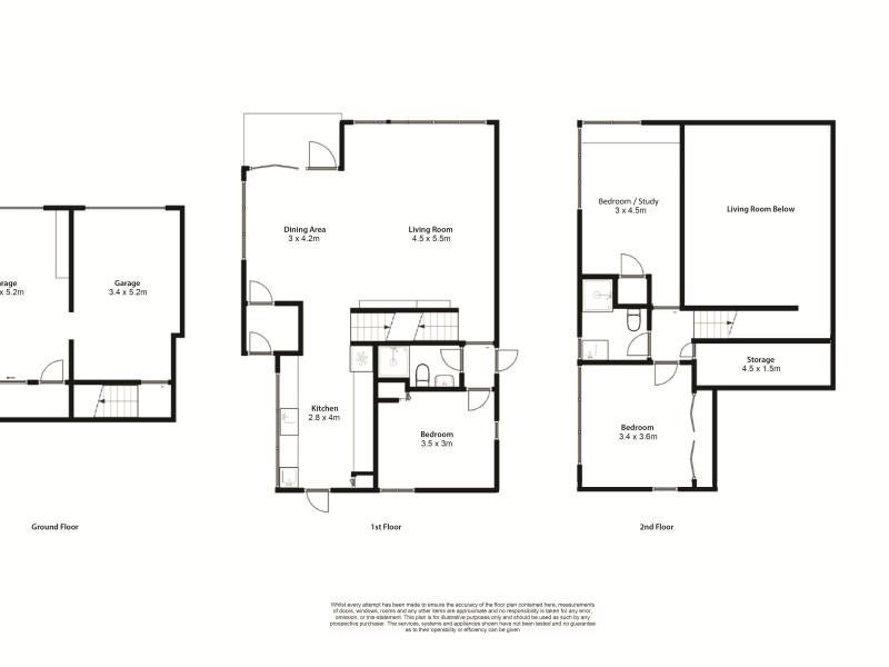 - Three private double bedrooms, one currently set up as an office / guest room with Murphy bed