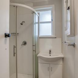 - A contemporary tidy bathroom, ensuring a serene space for your daily routines.