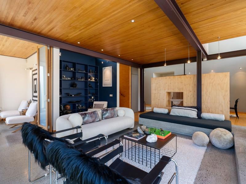 Outdoor living is a standout feature, with two distinct outdoor areas designed for year-round enjoyment. One includes an outdoor fire and a retractable electronic Oztech canopy, ensuring comfort and shelter no matter the weather, while still embracing the home's remarkable setting.