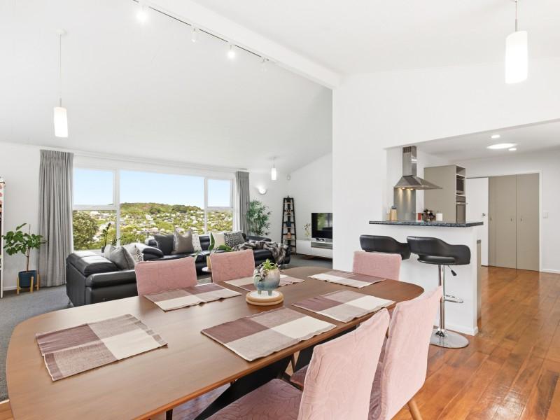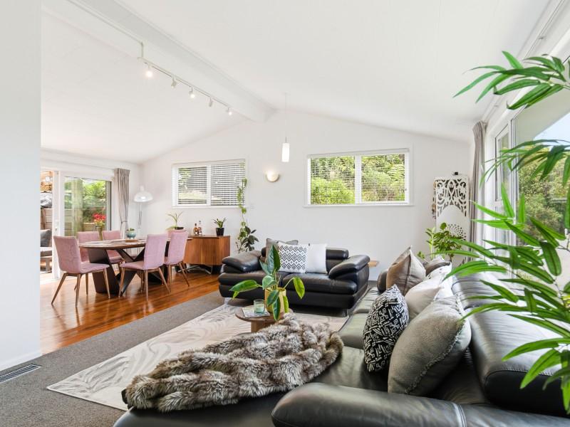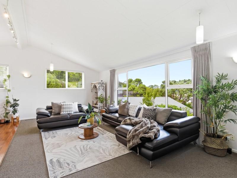 - Sun-soaked open-plan living with large picture windows framing leafy Ngaio outlooks