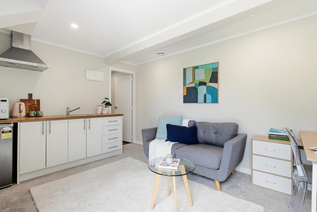 The main home occupies the upper level and offers a generous, light filled living space which flows seamlessly to a dedicated dining space and kitchen with pleasant outlook across section. Three well-proportioned double bedrooms with storage provide excellent accommodation, serviced by a family bathroom with separate w.c.