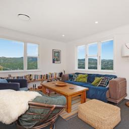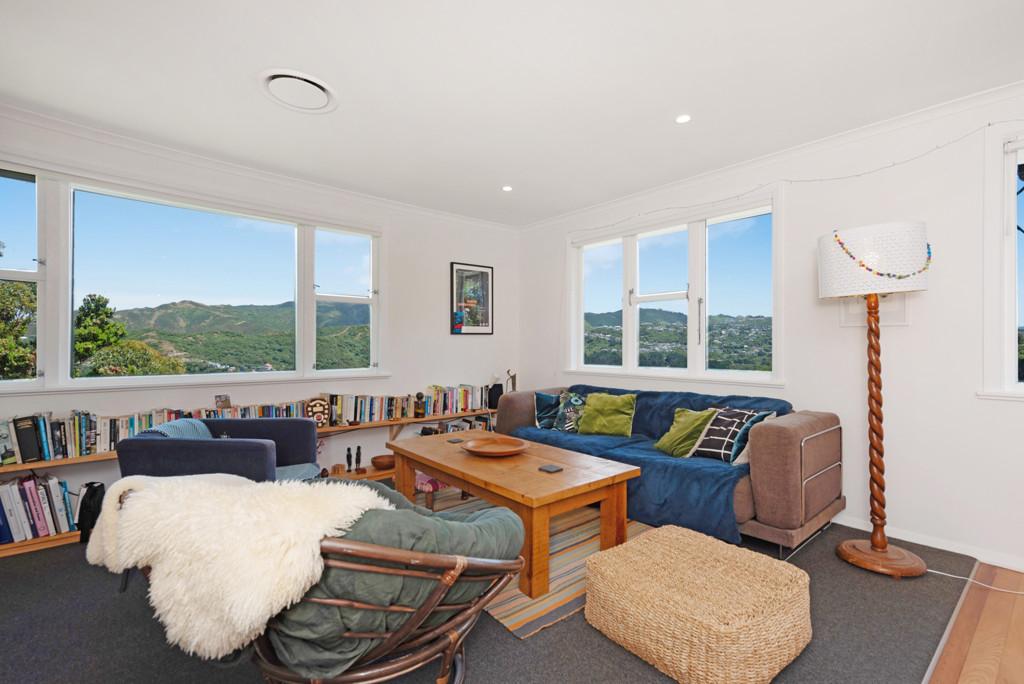 Beautifully presented, this classic 1960s family home is tucked away off the road on a private driveway, set on an elevated 499 sqm section with a flat lawn, double garage and a peaceful leafy outlook. North-west facing, the home enjoys all-day sun and sweeping panoramic views stretching from Brooklyn, across Berhampore Golf Course and Island Bay, out to Cook Strait.