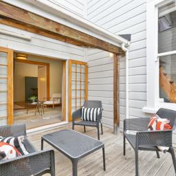 Located in the heart of Newtown, this beautifully converted character home presents a standout alternative to apartment living. One of four immaculately maintained homes, the ground-floor residence offers exceptional scale, effortless indoor-outdoor connection and the highly prized privilege of an exclusive-use section. With 110sqm of space, two supersized bedrooms and covered deck areas, it delivers a lifestyle of comfort and convenience in a location buyers consistently gravitate toward.