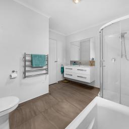 Just before the entrance to the residence, a concrete patio framed by mature trees and flowering plants creates a welcoming outdoor space and an inviting first impression. The location truly stands out, with parks and playgrounds directly across the road, a nearby bus stop, and easy walking distance to local reserves, Pokeno School, early learning centres and motorway access.