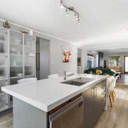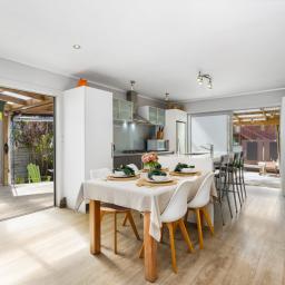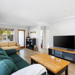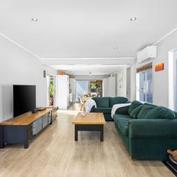 The sun-filled three-bedroom home features a well-designed open-plan layout, where the kitchen, dining and living areas flow seamlessly outdoors. The kitchen opens directly onto the deck, creating an effortless connection to the outdoor entertaining areas - perfect for summer BBQs, family gatherings and relaxed evenings with friends.