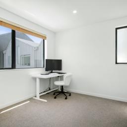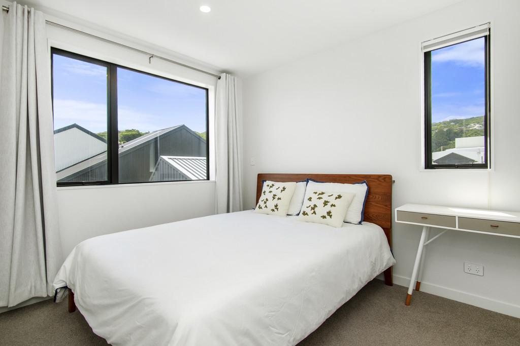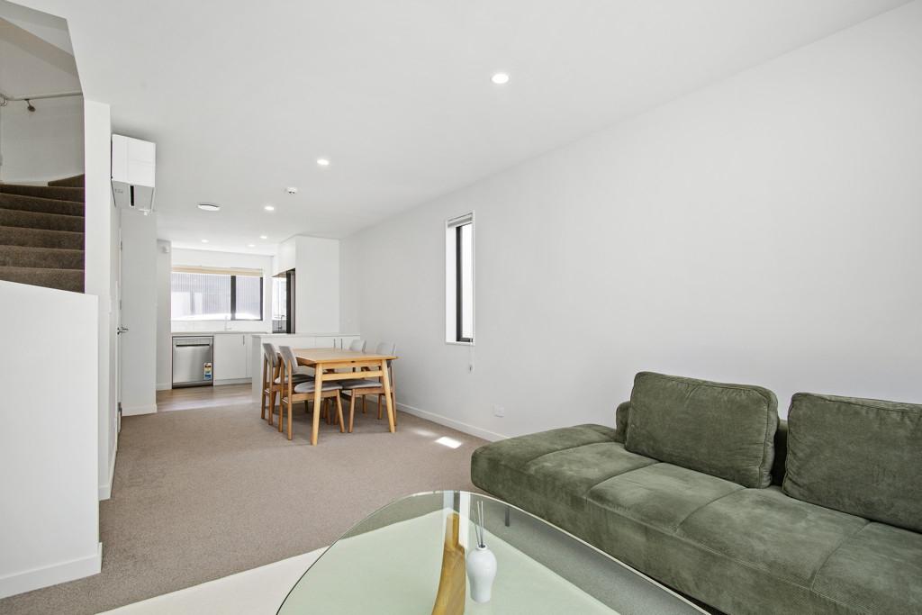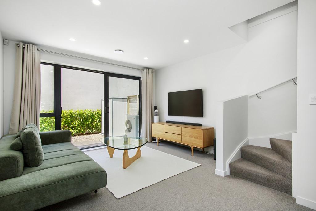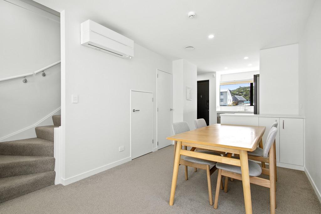 Upstairs, two generous bedrooms are serviced by a family bathroom, while the top floor is dedicated to the sunny master suite with its own ensuite and views to the Western Hills. Modern comforts include double glazing, full insulation, a heat pump, plush carpet, and quality appliances. A dedicated car park at the front completes the package.