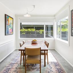 The welcoming entry point, leads to the spacious living with superb indoor-outdoor flow. There is also the good sized kitchen with a light filled dining, perfect for family meals.