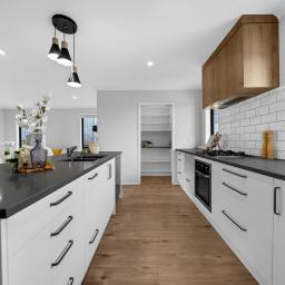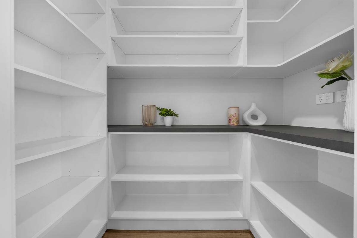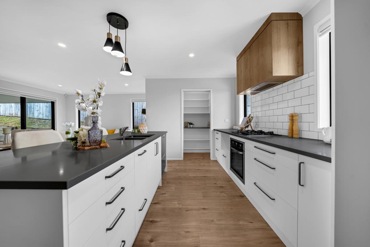 #Modern kitchen equipped with a walk-in pantry and seamless flow to a charming portico, ideal for al fresco dining and entertaining