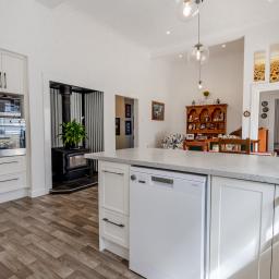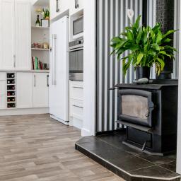 There’s space here for kids to sprawl, parents to retreat and everyone to have a corner to call their own. At the centre sits a brilliantly designed kitchen with soft-close cabinetry, breakfast bar and layered lighting that shifts the mood from weekday bustle to slow Sunday mornings. It flows into the dining area and a relaxed fireside nook, a cosy spot destined for storybooks, quiet chats or winter nights by the glow.