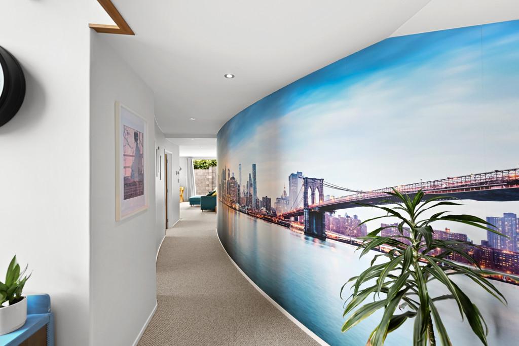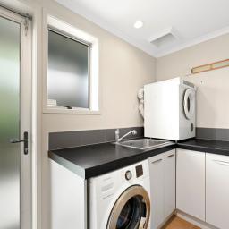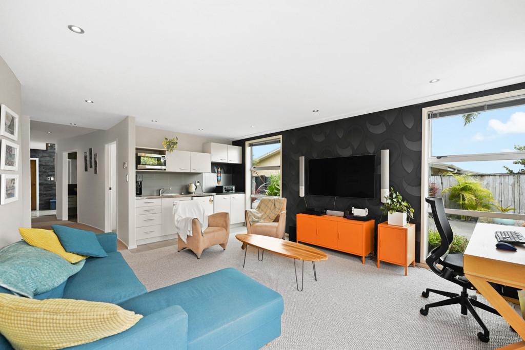 Downstairs offers a thoughtfully designed haven for extended family, teenagers, or guests, with a second living area and kitchenette, three bedrooms, a contemporary family bathroom, and a separate toilet. An upstairs laundry shoot connects to the dedicated laundry and exceptional storage solutions throughout the home enhance both form and function.