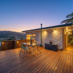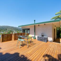 A standout feature is the large outdoor entertainment deck, designed with multi-level access for effortless indoor and outdoor flow. It is an ideal setting for morning coffee, evening meals, or hosting friends while taking in the serene valley outlook.