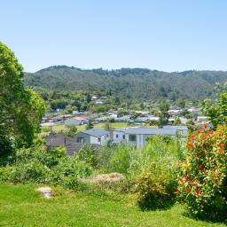 A tranquil home offering privacy and sweeping valley views, tucked away down a private driveway in a quiet grove.