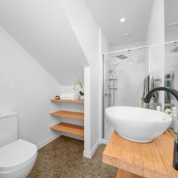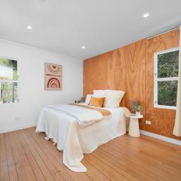 As soon as this property reveals itself from the bush it starts to impress. You then open up to industrial vibes as soon as you enter. The ground floor offers two huge double bedrooms, both with walk in wardrobes. There is a family bathroom, separate laundry and good storage.