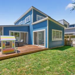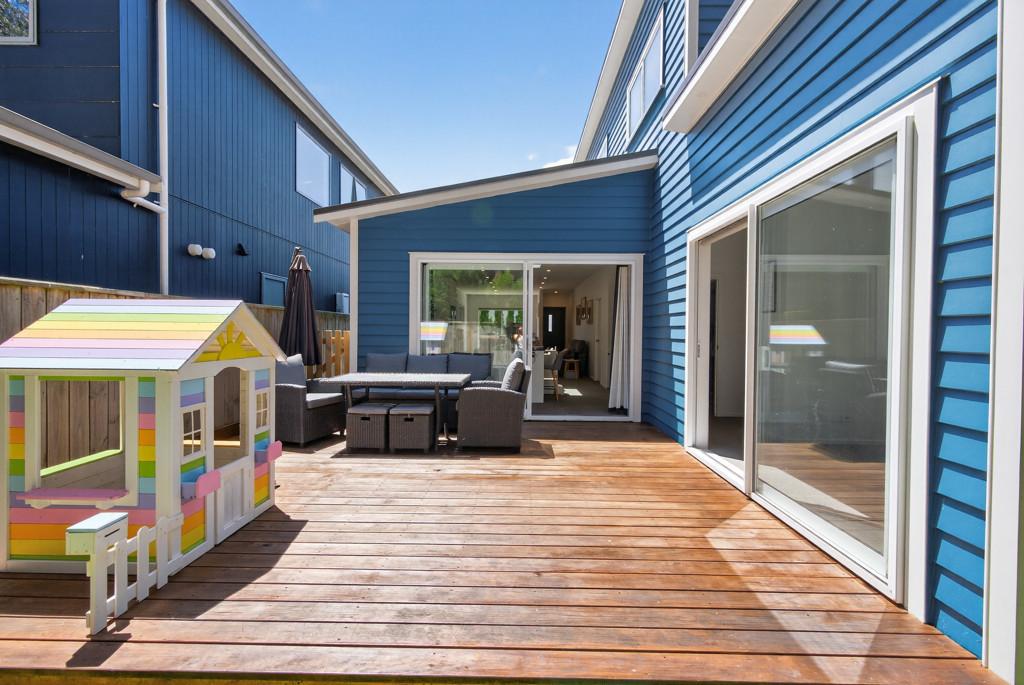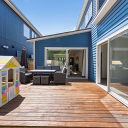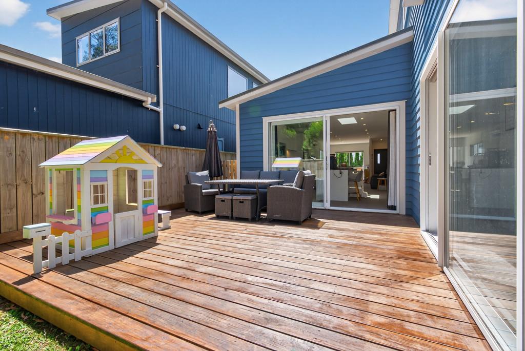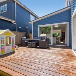 Outside is a private deck, a great sun-soaked space for BBQs, relaxing, or watching the kids play safely in the fully fenced section.