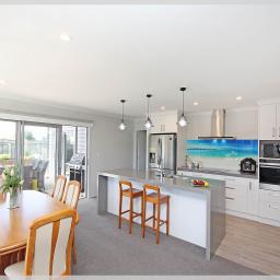 This impressive property features an office and three generous bedrooms, including a master suite with walk in robe and a stunning en-suite that boasts a floor-to-ceiling tiled shower and direct deck access via a ranch slider. The main bathroom is well-appointed with both a bath and a separate shower, the kitchen is distinguished by composite countertops, top-tier appliances, and a walk-in scullery—perfect for avid home chefs. With two living areas and a dedicated office, there’s plenty of room for the whole family. The living area leads to a covered outdoor entertaining area, which can be sheltered from the wind for added comfort. Two heat pumps provide climate control, infinity gas supplies hot water, and cooking is electric. This 206sqm home was built in 2019, and has been carefully maintained by its owners ever since.