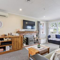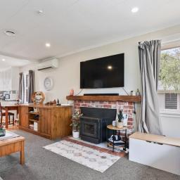 Light, bright, and welcoming, the home features neutral interiors and a low-maintenance brick and tile exterior. The open-plan living and dining area forms the heart of the home and is kept cosy year-round with a heat pump and a pellet fire. Plus, the added bonus of an HRV system - ensuring a warm, dry, and healthy environment in every season.