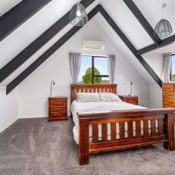 The layout is well considered, with three bedrooms and a bathroom located upstairs, along with a heat pump to keep the upper level comfortable year-round. Downstairs features a fourth bedroom with its own bathroom, making it ideal for guests, teenagers, or extended family.