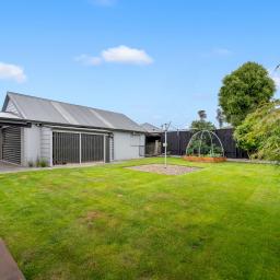The fully fenced section provides security for children and pets, with a gated front entry for added peace of mind. Completing the package is a large external garage with workshop space, ideal for storage, hobbies, or extra vehicles.