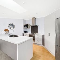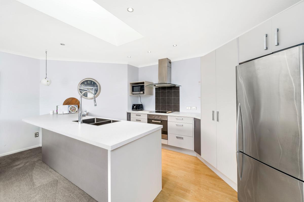 The main living area is light-filled and well-positioned to capture the sun, creating a warm and inviting space for everyday living. The updated kitchen is modern and functional, offering clean finishes and an efficient workspace for daily use.