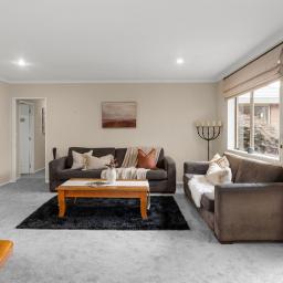 Accommodation is thoughtfully arranged. The master bedroom includes its own ensuite, providing privacy and separation, while two additional bedrooms are well sized and serviced by a full family bathroom and separate toilet. Brand-new carpet throughout brings a fresh finish and immediate comfort.