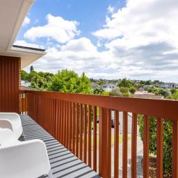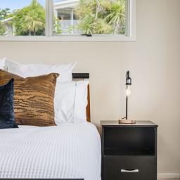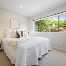 Upstairs is the heart of the home with a contemporary kitchen, open plan dining and lounge capture beautiful water views and Rangitoto Island, an inviting setting for relaxing or entertaining with family and friends. Here you will find a North-East facing deck perfect for your morning coffee watching the yachts go by in the harbour.