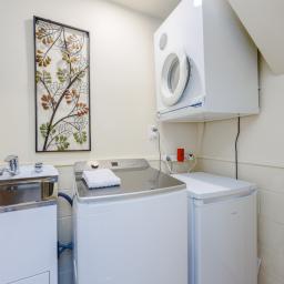 Upstairs, two bright and airy bedrooms with high ceilings create an inviting environment, perfect for children or guests, accompanied by a family bathroom for added convenience.