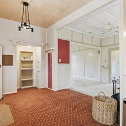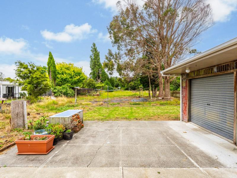 The home features open plan living, three bedrooms, an older kitchen with pantry storge, a modernised bathroom with a corner shower, slipper bath and vanity, plus a separate toilet. An internal-access workshop at the rear of the home adds practicality for storage or projects. While the house is older and in need of maintenance, the real value lies in the expansive landholding, with potential to subdivide (subject to Council approval) which already has access down the western side of the home.