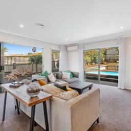 Showcasing the very best of private indoor-outdoor living, this light-filled and beautifully presented home offers generous space for families of all sizes. Designed with effortless entertaining in mind, the open-plan living and dining area flows seamlessly to multiple sun-drenched decks, creating the perfect setting for relaxed gatherings and cooling off in the pool on warm summer days.