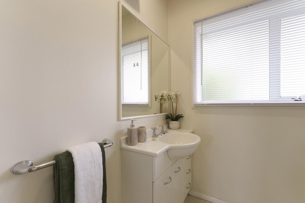 Built in permanent materials with double-glazed aluminium joinery, the home enjoys a sunny orientation, heat pump comfort, internal-access garage with roof space offering future scope, and ample off-street parking for residents and guests.