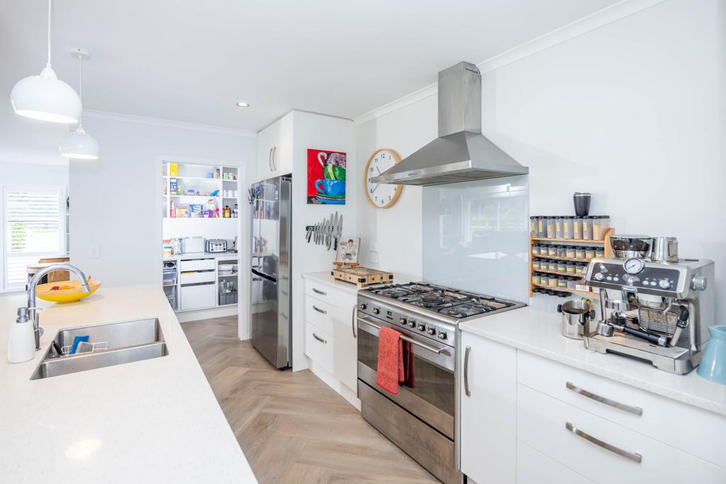 The expansive open-plan layout allows everyone their own space, enhanced by separate formal and family living areas. At the heart of the home is the stylish, well-appointed kitchen, complete with stone benchtops, ample cupboard and bench space, quality stainless-steel appliances, and a large walk-in scullery. Designed for entertaining, the kitchen allows the chef to stay connected while effortlessly cooking up a storm for family and friends.