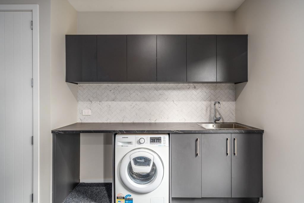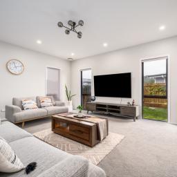 There's two luxurious tiled bathrooms plus a separate guest toilet, and a super carpeted internal access double garage incorporating the laundry and with lovely storage cupboards for a tidy finish. (There's a flat driveway for parking if you want to use the garage as a recreation room.)
