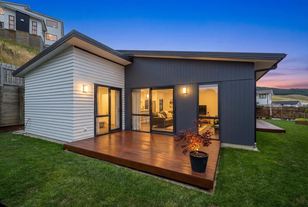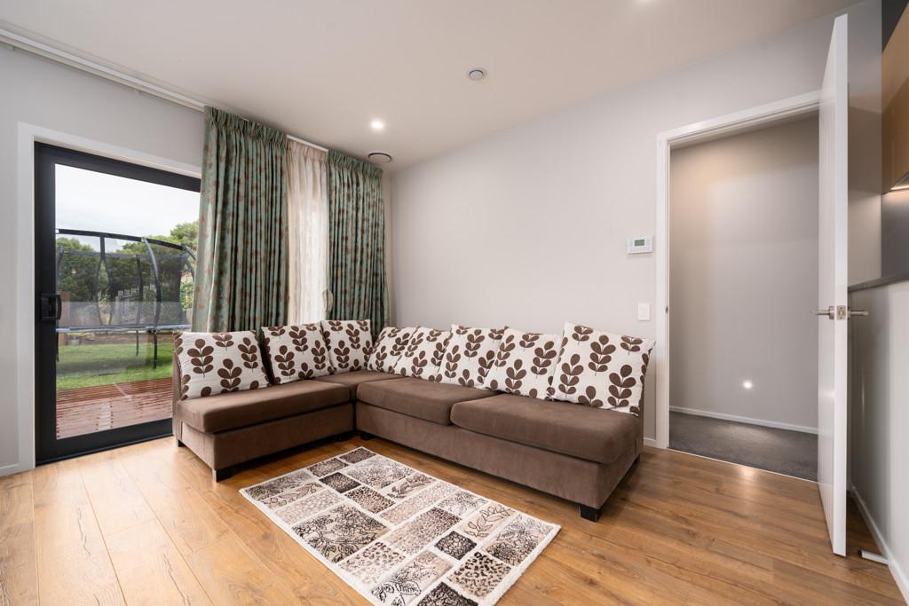 The two living rooms and the main bedroom open to decks and lawn and a family friendly fenced garden with established planting including colourful flower beds and a productive passionfruit vine.