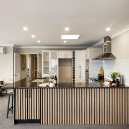 At the heart of the home sits a modernized kitchen that connects seamlessly to a large open plan living and dining space. Bathed in natural light from skylights and enhanced by LED lighting throughout, this zone is perfectly designed for everyday family life and relaxed entertaining.
