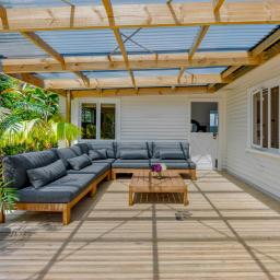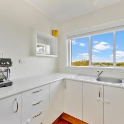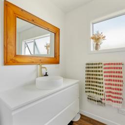 Upstairs, polished native timber floors feature throughout the open-plan living area, which opens out onto a balcony that captures beautiful natural light and sweeping sea views. A country-inspired split barn door leads to a covered deck on the other side of the home - a sheltered space ideal for alfresco dining and entertaining, whatever the season. Two generous bedrooms and an updated bathroom complete this upper level.