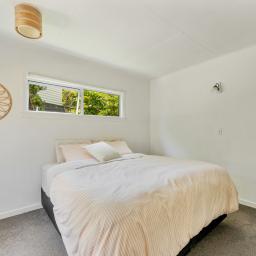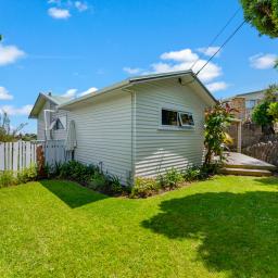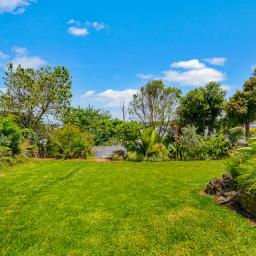 Downstairs, a third bedroom and laundry are complemented by a versatile bonus room - perfect as a home gym, hobby space, office, or a second living zone. From here, the land continues to step down to a wide, flat lawn framed by established gardens - a great spot for relaxing, play, pets, or future landscaping ideas - before leading to a final garden tier with shed, compost bins and trees.
