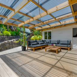 Positioned at the end of a Spotswood cul-de-sac, 13 Mount View Place sits on a generous 928sqm tiered section that unfolds across four thoughtfully used levels. With road-level garaging plus an additional off-street park for one car, the home is set on the next tier where it enjoys a sunny north-facing aspect, a sense of privacy, and elevated sea views.