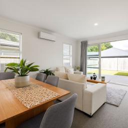 Two well-proportioned bedrooms serviced by a stylish, well-appointed bathroom. Comfort is assured year-round with a heat pump, double glazing, and excellent insulation. A single internal-access garage provides everyday convenience, with additional off-street parking available for guests.