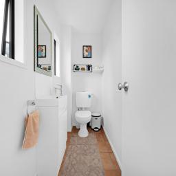 Downstairs features a generous open-plan kitchen, dining, and lounge area, creating a welcoming space for everyday living and entertaining. The living area is kept comfortable year-round with both a heat pump and a large wall heater. A separate toilet adds extra convenience, while an internal access single garage completes the lower level.