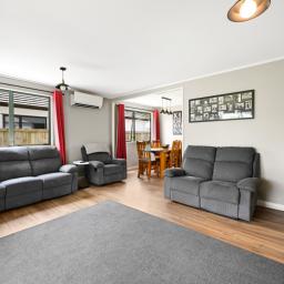 Step inside this inviting 3-bedroom home, where a tasteful interior creates a warm and welcoming atmosphere. The spacious living area seamlessly flows out to a sun-drenched deck and a fully-fenced backyard-ideal for kids, pets, and entertaining family and friends.