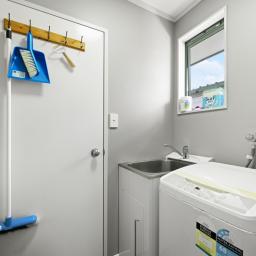 The modern kitchen is a chef's delight, designed for easy meal prep and family gatherings. A well-appointed family bathroom, along with a separate laundry, toilet, and shower, add convenience for busy households.