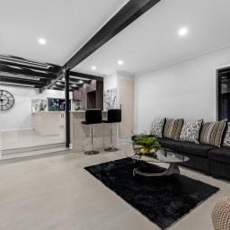 Designed with comfort in mind, the home boasts four oversized bedrooms, three stunning bathrooms (including two ensuites), and two generous lounges, providing space and flexibility for all stages of life. The front room has its own external entrance and could easily be used as a work from home space, AirBnB or border room. The chef's kitchen is both stylish and practical, featuring a tiled splashback and brand new appliances.