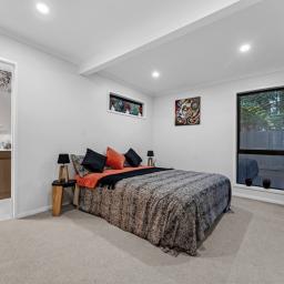 Bathed in natural light and surrounded by native bush, the setting is peaceful and private. Enjoy quiet mornings or relaxed evenings on the covered deck, soaking in the tranquil surroundings and listening to birdsong.