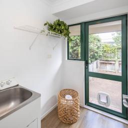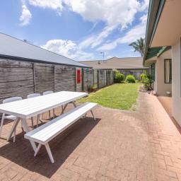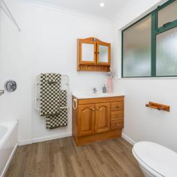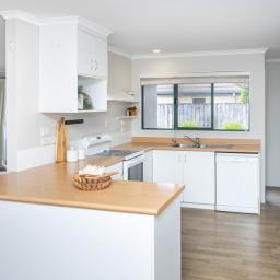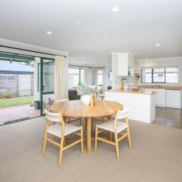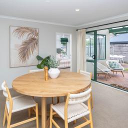 Spacious open plan living is the brief here and the sunny living area features a Rinnai gas fire, the dining area is a good size and features a slider leading to a covered patio and the kitchen is well equipped with storage needs.