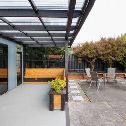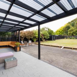 The undercover entertaining area is ideal to relax under and the built-in seating entices you to sit and enjoy yourselves even when it is raining - it's like another room.